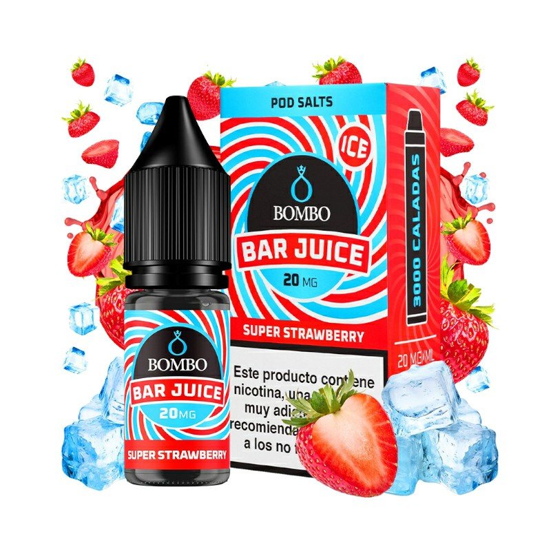 El líquido Ice de Bar Juice Nic Salts by Bombo es el e-liquid de fresa más intenso jamás logrado. Receta dulce y refrescante que te llenará la boca de auténtico sabor frutal.