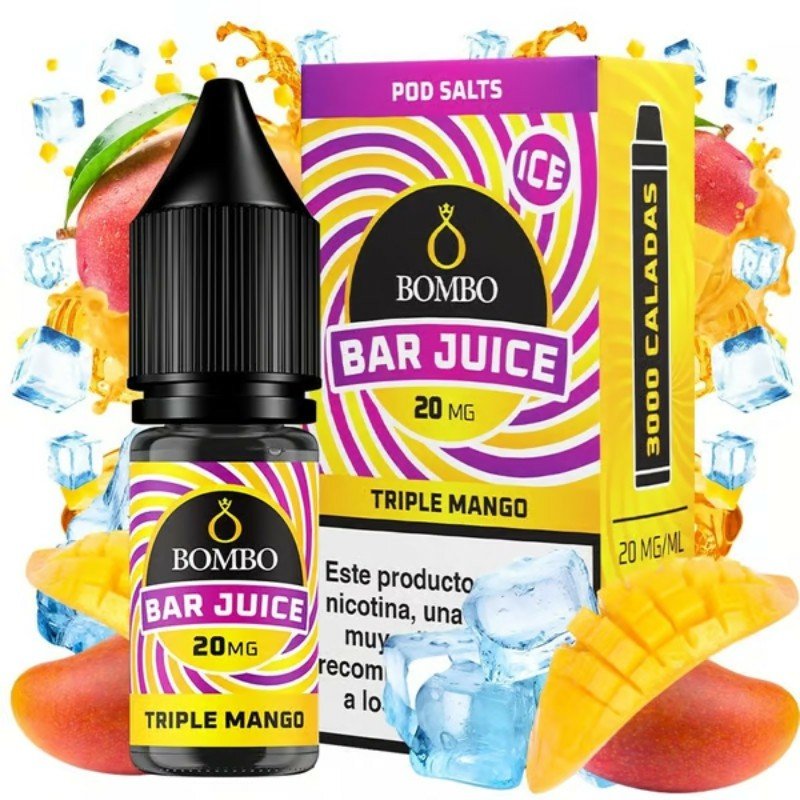 El líquido Triple Mango Ice de Bar Juice Nic Salts by Bombo ofrece el sabor a mango definitivo, consiguiendo destacar los apreciados matices de esta fruta exótica. Una explosión de dulzor refrescante sin precedentes.